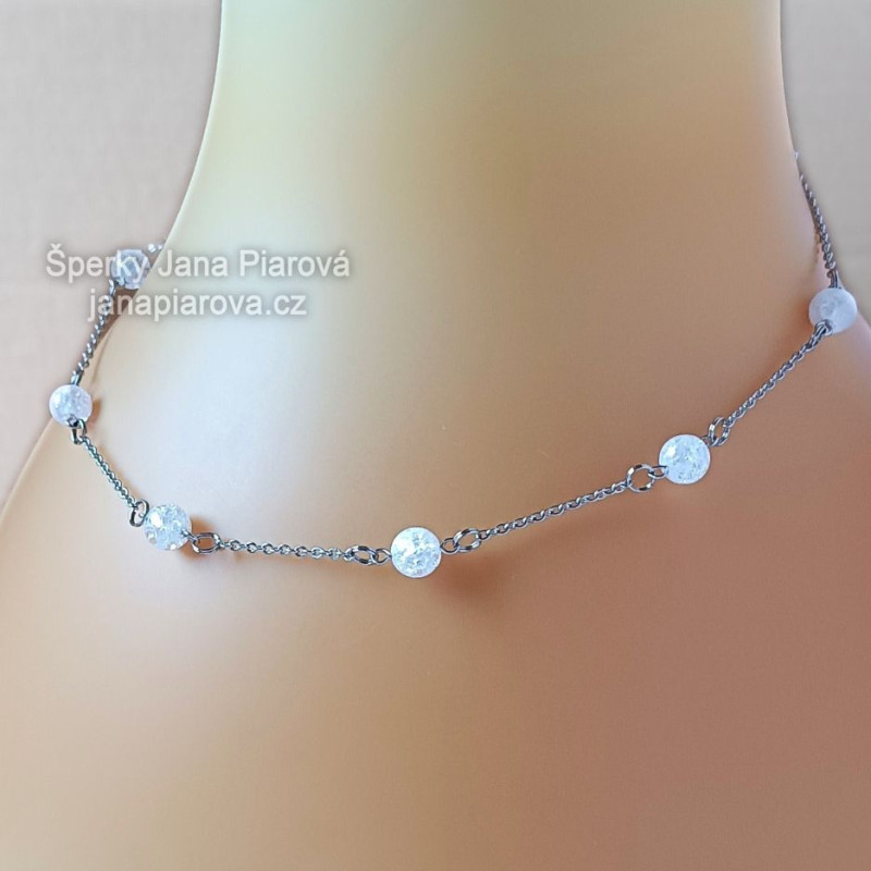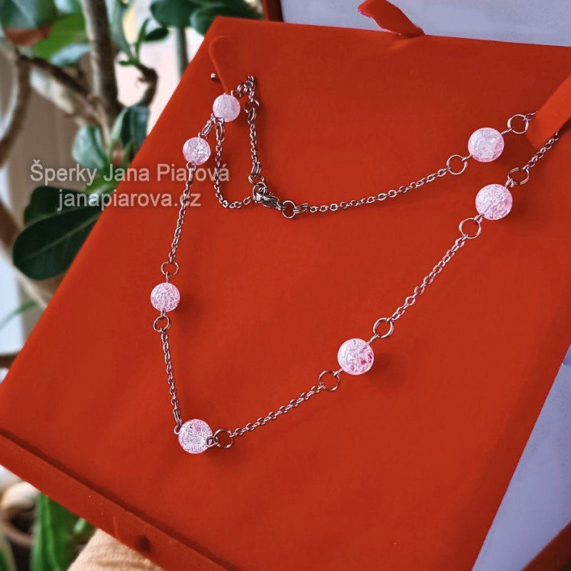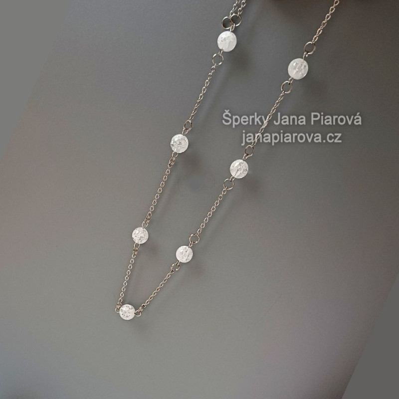 Náhrdelník / KŘIŠŤÁL tzv. pukaný/ 7 kuliček 8mm mezi řetízky