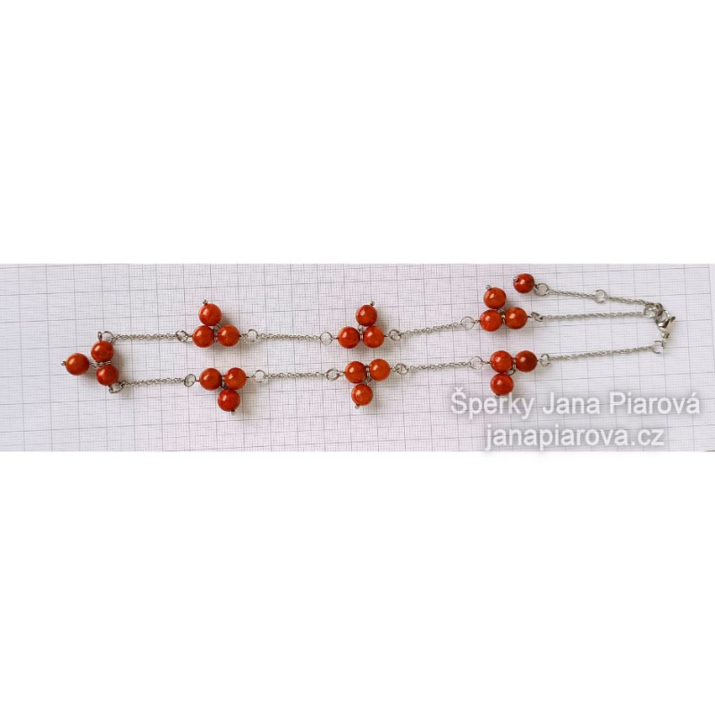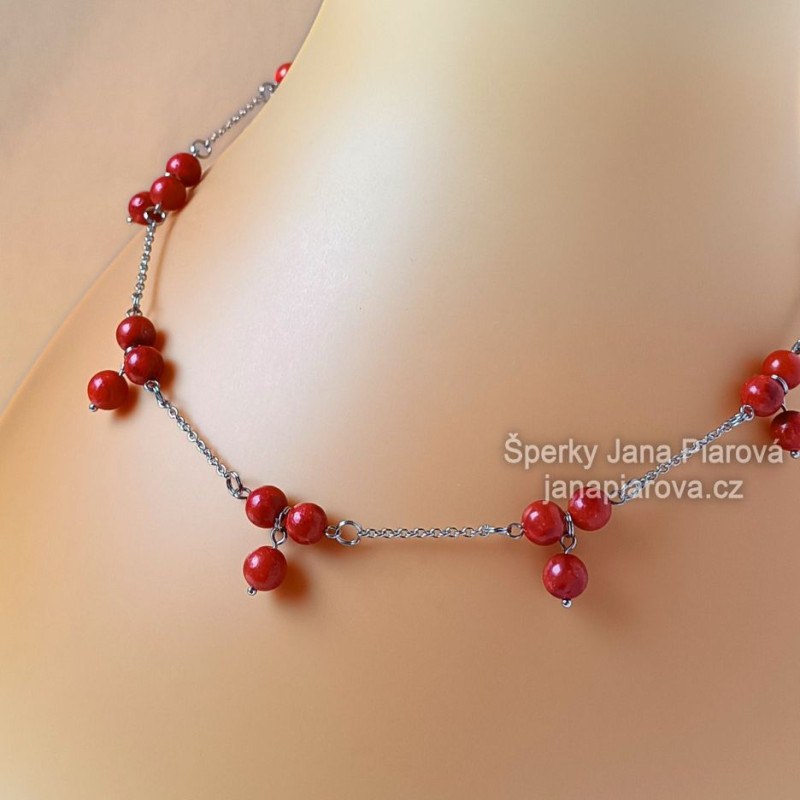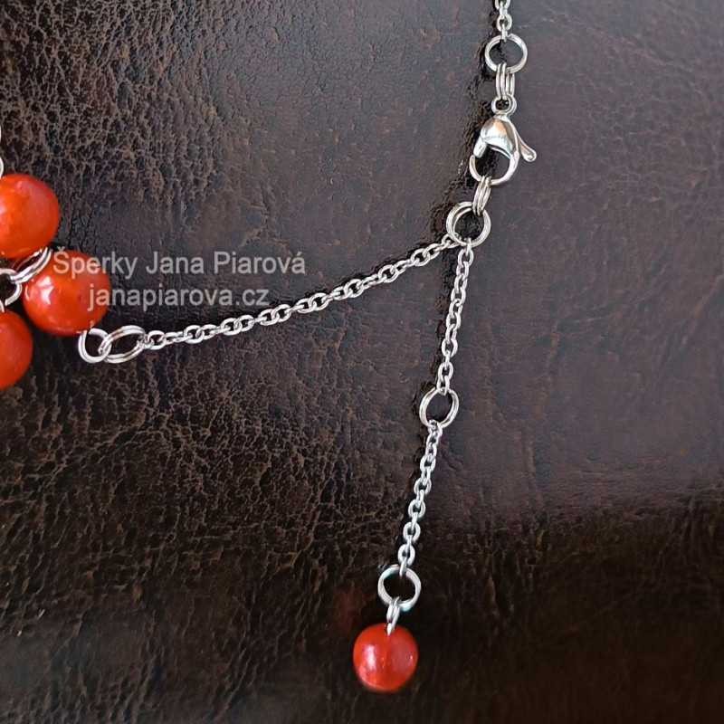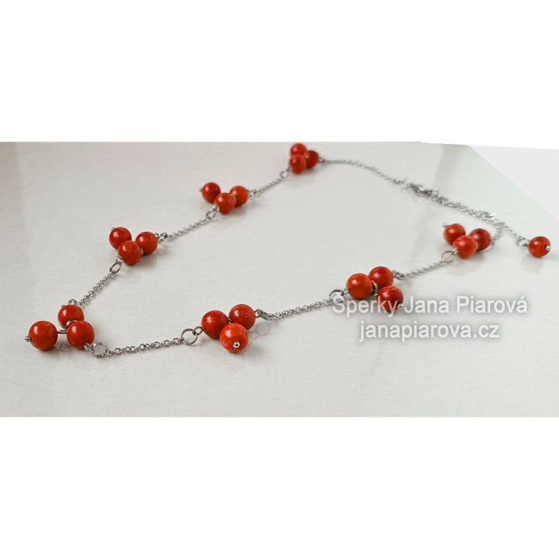 - Materiál: KORÁL 8 mm, 21 ks + 1 ks 7 mm & chirurgická ocel 316L leštěná. Korál je pravý, dobarvený, upravený.